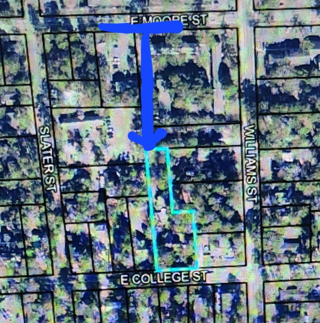 Directions: N on Patterson, R on E. Moore and 1/2 way between Slater & Williams St. turn R down an alley that ends at 208 1/2 College