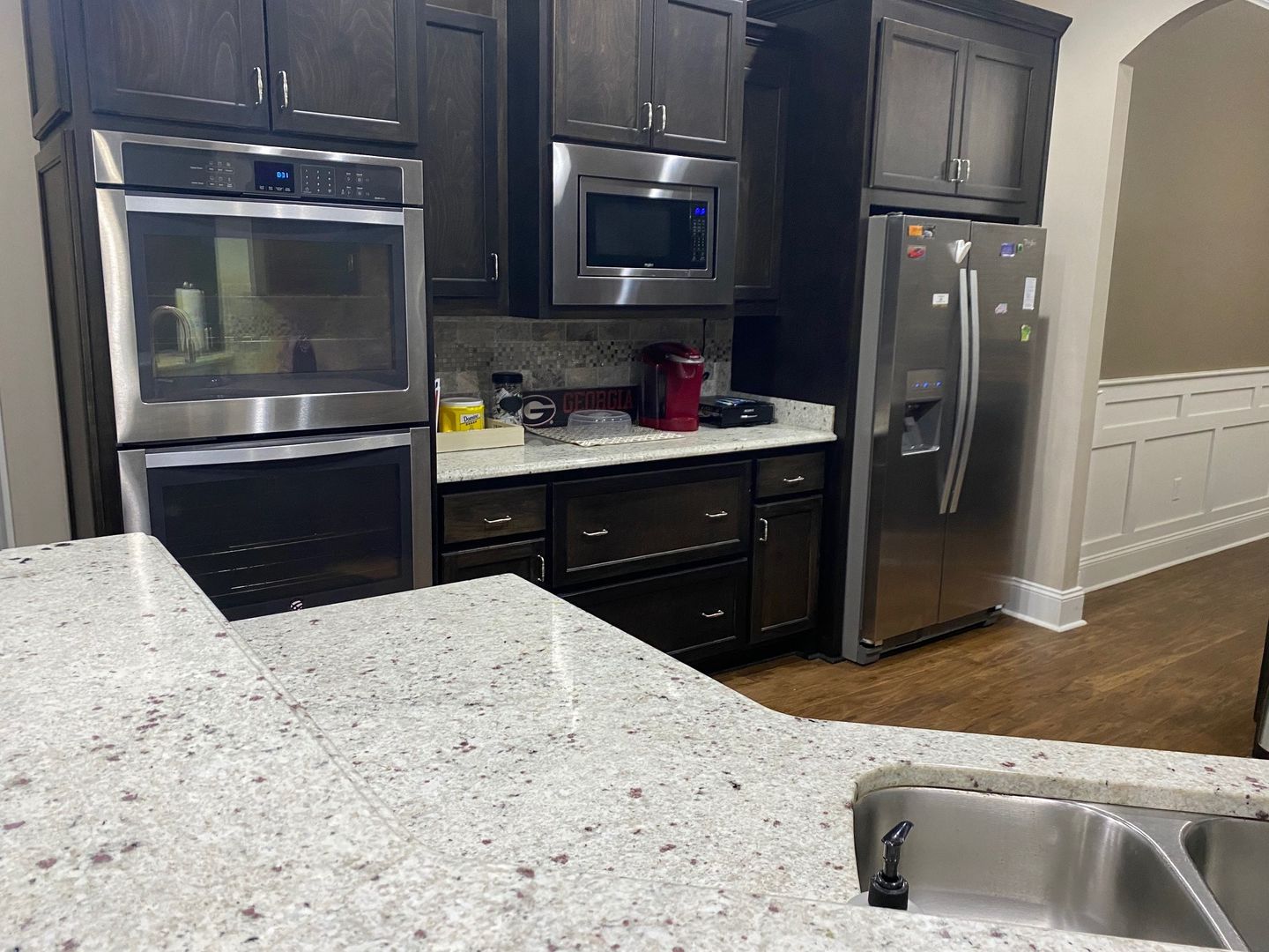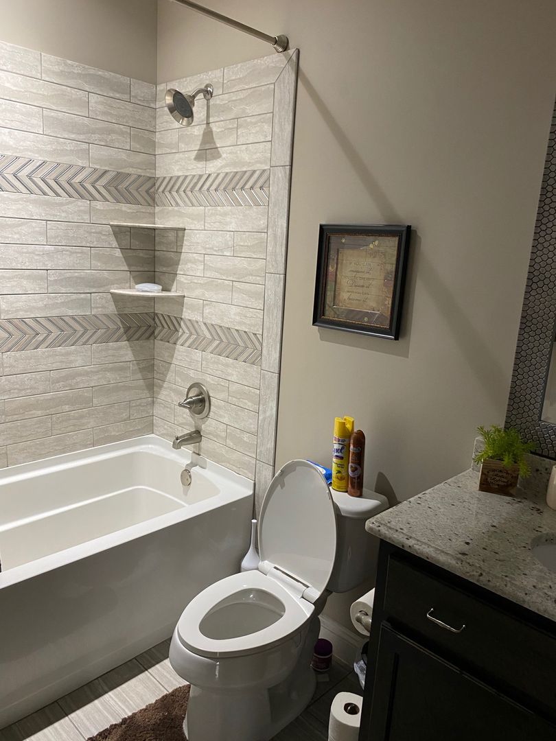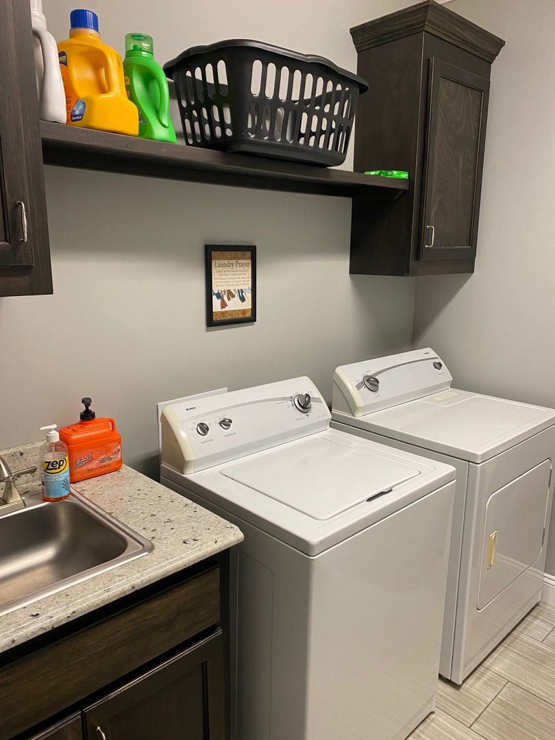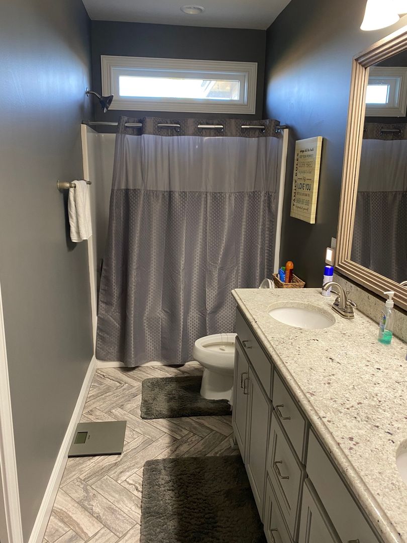 Four bedrooms, three full bathrooms, with an open split floor plan. Kitchen has custom cabinets, granite counter tops, and a tiled back splash. Master bathroom has a double vanity, separate tiled shower and garden tub. This property also has a 3 car garage and a screened in back porch.